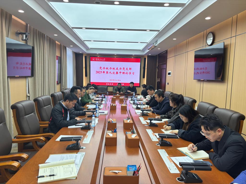 11月28日下午,党办校办校友办党支部在屏风校区办公楼第一会议室召开2025年第九次集中理论学习暨学校第四次党代会专题党日活动。党办校办校友办党支部全体党员参加会议,党办校办法务办主任、党支部书记冯广辉同志主持会议。